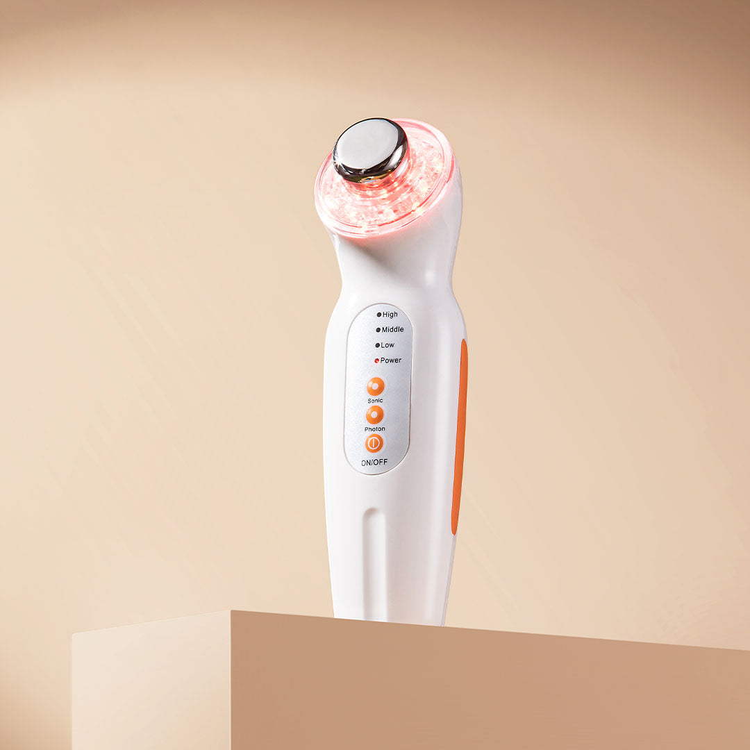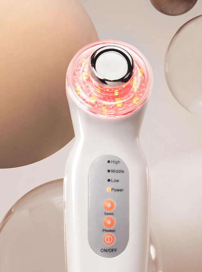 - Ultrasonic skin tightening + 3 LED light therapy colors